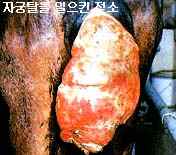 - 방치한 채 시간이 더욱 지나면 탈출부위가 자궁은 흑적색(黑赤色)으로 변하며 부패하면 패혈증을 나타낸다.